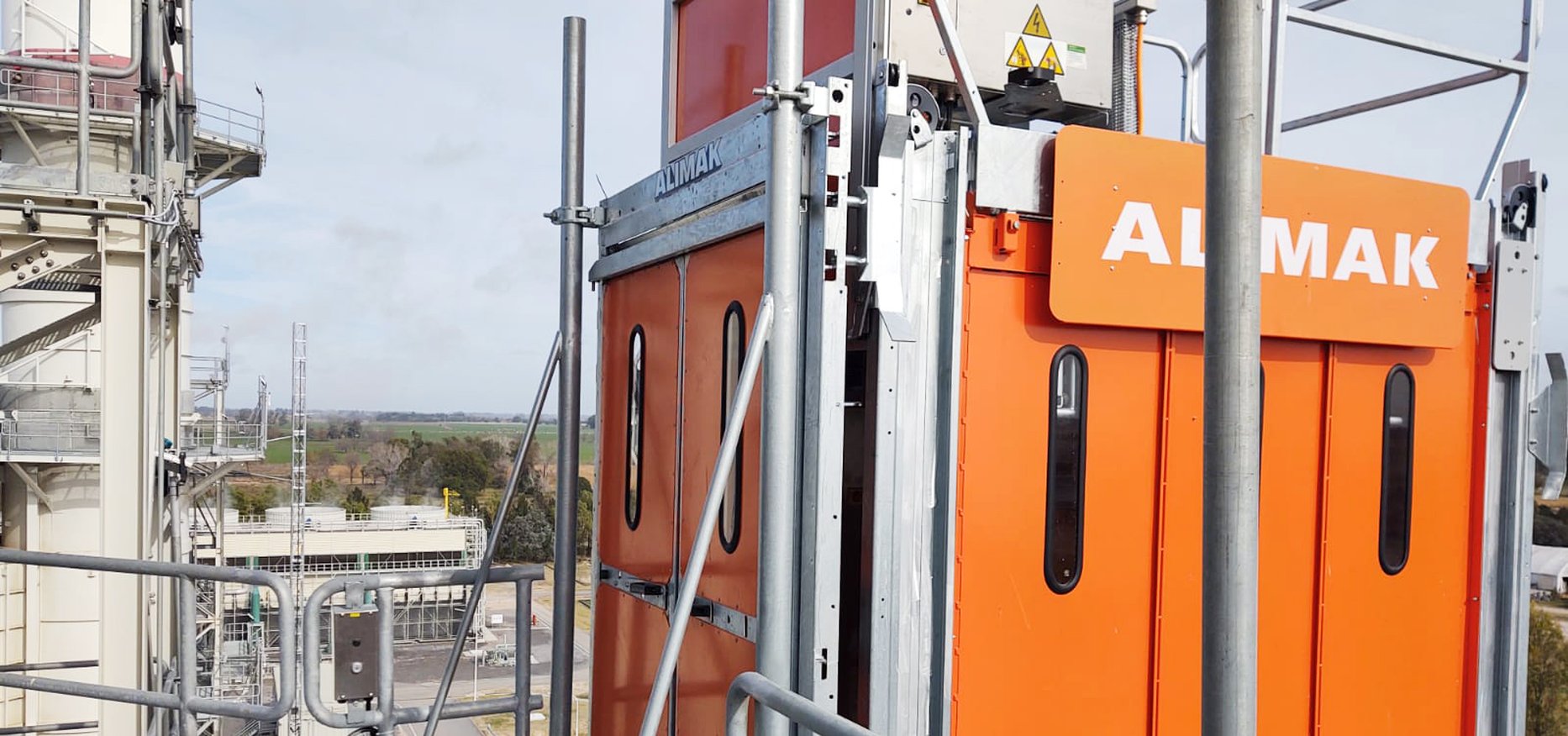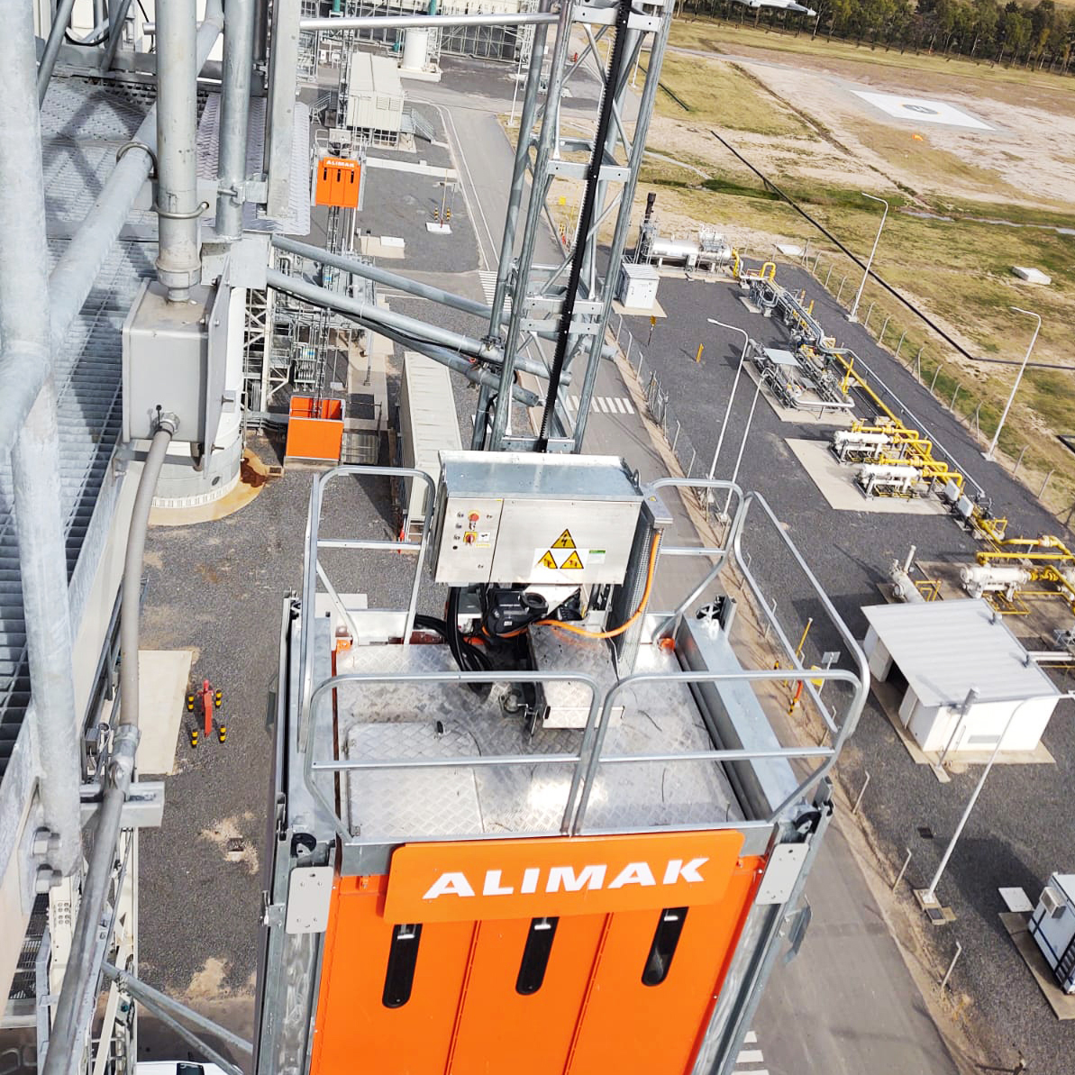 Safety is enhanced with the inclusion of an Alimak safety device, overload sensor, and mechanical interlocking door system to guarantee the highest safety standards. The elevator speed of 0.5m/s significantly improves efficiency at the plant to quickly transport personnel responsible for continuously monitoring vital emission measurements. The highly efficient helical gearbox also uses 30% less power consumption.