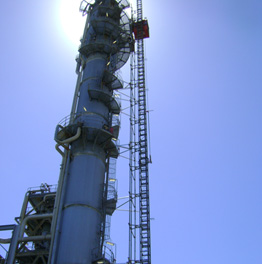 A temporary Alimak rack and pinion hoist was installed at the petroleum refinery, providing access to the Reformer Tower during plant shutdown and refurbishment. Alimak worked in compliance with all site safety regulations, operating conditions and timeframes.