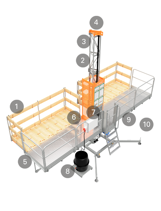 Zubehör wie Masten und Befestigungselemente ist erhältlich, um spezifischen Anforderungen an den vertikalen Zugang gerecht zu werden.