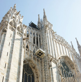 Bei der Lieferung von kundenspezifischen Höhenzugangslösungen für den Mailänder Dom konnte Alimak auf eine 20-jährige Erfahrung aufbauen und so den Zeitaufwand für den Zugang zur Baustelle auf dem Dach des Bauwerks deutlich reduzieren.