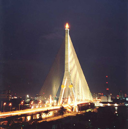 Die Rama VIII-Brücke ist nach Thailands ehemaligem König Rama VIII benannt und wurde im September 2002 offiziell eröffnet, im selben Jahr, in dem Bangkok sein 220-jähriges Bestehen feierte. Sie verfügt über eine Hauptspannweite von 300 m mit zwei Fahrspuren pro Richtung für den Verkehr sowie eine Spur für Fahrräder und Fußgänger.
