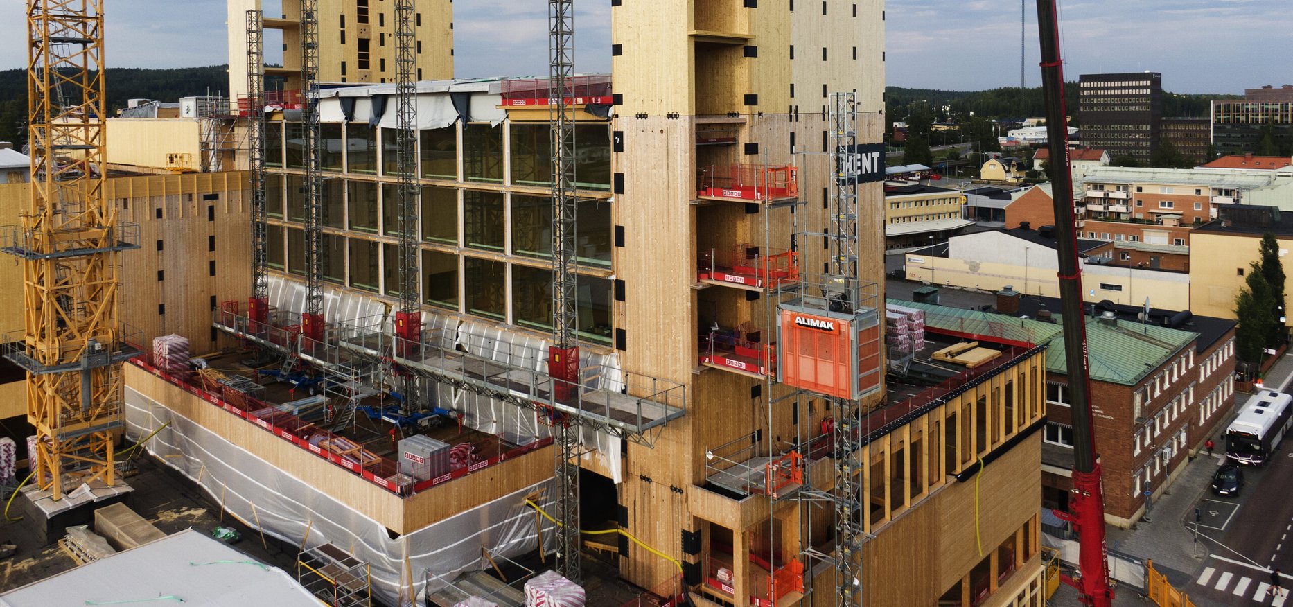 Alimak Bauaufzüge an einem der höchsten Holzgebäude der Welt
