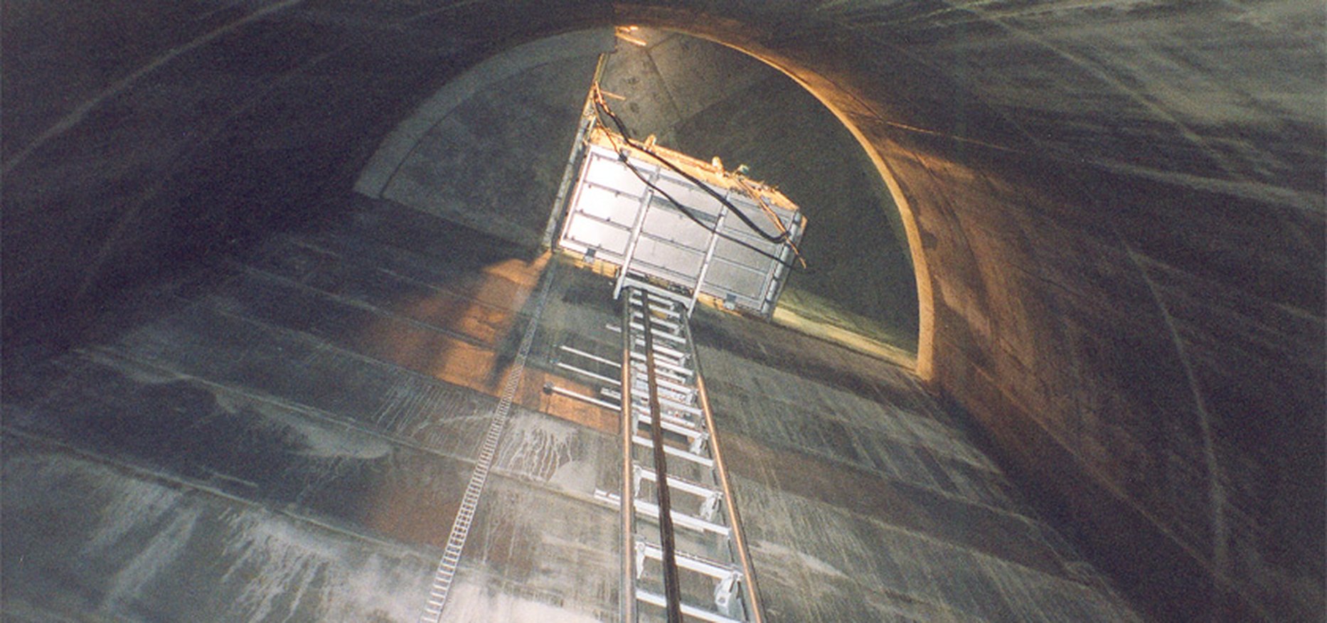 Dieses Bauaufzugssystem ermöglichte einen effizienten und zuverlässigen Zugang über einen 100 Meter tiefen Schacht mit 9 Metern Durchmesser. In einem rollenden 24-Stunden-Dreischichtsystem wurden täglich unglaubliche 1.200 Arbeiter mit diesen Bauaufzügen transportiert. Das System umfasste einen doppelstöckigen Alimak Scando 20/30 mit einer Geschwindigkeit von 28 Metern pro Minute sowie zwei Alimak Scando Super 28/37 mit einer noch schnelleren Geschwindigkeit von 96 Metern pro Minute. Dies lieferte die erforderliche Funktionalität für diese enorme Ingenieurleistung, die bei jeder Fahrt bis zu 106 Passagiere und 8,8 Tonnen Fracht beförderte. Das System bewies auch seine strapazierfähige Verarbeitungsqualität und legte in jedem Betriebsjahr geschätzte 65.000 km zurück.