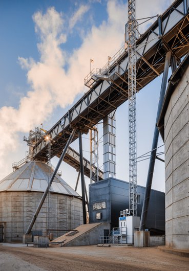 Alimak Industrieaufzüge eignen sich für den Einsatz bei allen Wetterbedingungen, um Personen und Materialien zu den verschiedenen Bereichen einer Getreideanlage zu transportieren. Fluss- und Bahnterminals werden genutzt, um große Mengen Getreide mittels Förderbandtechnologie zu Getreidesilos zu transportieren.