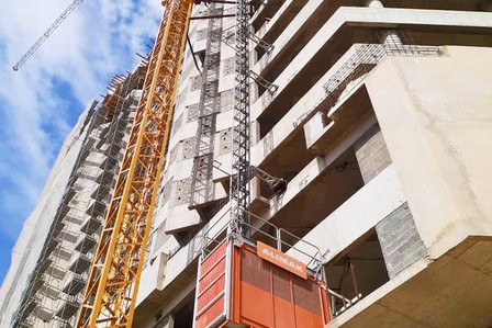 Das Angebot an temporären Lösungen von Alimak umfasst Bauaufzüge, Transportplattformen, Mastkletterbühnen, Materialaufzüge, Gerüstsysteme und Leiteraufzüge, die für eine Vielzahl von Anwendungen im Bauwesen geeignet sind.