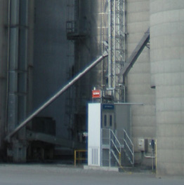 TGM/GROWMARK seleccionó la aplicación de un elevador (elevador de personal) Alimak modelo SE300 como un producto rentable para esta instalación. El elevador de personal se instaló fácilmente en el silo de hormigón existente mediante la adición de una base de hormigón en la parte inferior y una extensión de la plataforma en la parte superior del silo. Esta instalación fue realizada por los mecánicos industriales de TGM, con la inspección final y las pruebas de la unidad a cargo de AHI.