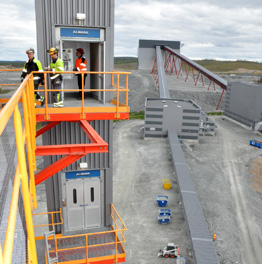Los elevadores Alimak se han instalado para facilitar el mantenimiento y la inspección de diferentes aplicaciones como la trituración, el acopio de mineral, la molienda, la flotación y la deshidratación. El entorno de trabajo en la mina exige una gran durabilidad y fiabilidad de los elevadores. Los elevadores Alimak admiten alturas de elevación entre 14 metros y 48 metros y capacidades de carga útil entre 400 kg y 1.800 kg. Están equipados con el moderno sistema de control basado en microprocesador ALC-II, teléfono de emergencia y dispositivo de detección de sobrecarga.