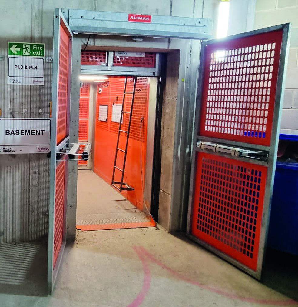 Parte de la obra requiere que los paneles de fachada se descarguen de un camión a una plataforma con ruedas. Para ayudar en ello, los ingenieros de Alimak diseñaron una puerta a medida de 4,2 m de altura para el montacargas Mammoth (la altura estándar es de 2,8 m). Estas puertas a medida permiten que la plataforma que transporta los paneles de fachada se empuje directamente al montacargas, lista para ser transportada a la planta correspondiente. Las puertas a medida cuentan con una extensión de acero en la hoja de la puerta que proporciona la altura adicional. Cuando no se requiere, la extensión puede bloquearse, permitiendo que solo se abra la parte de tamaño estándar de la puerta.