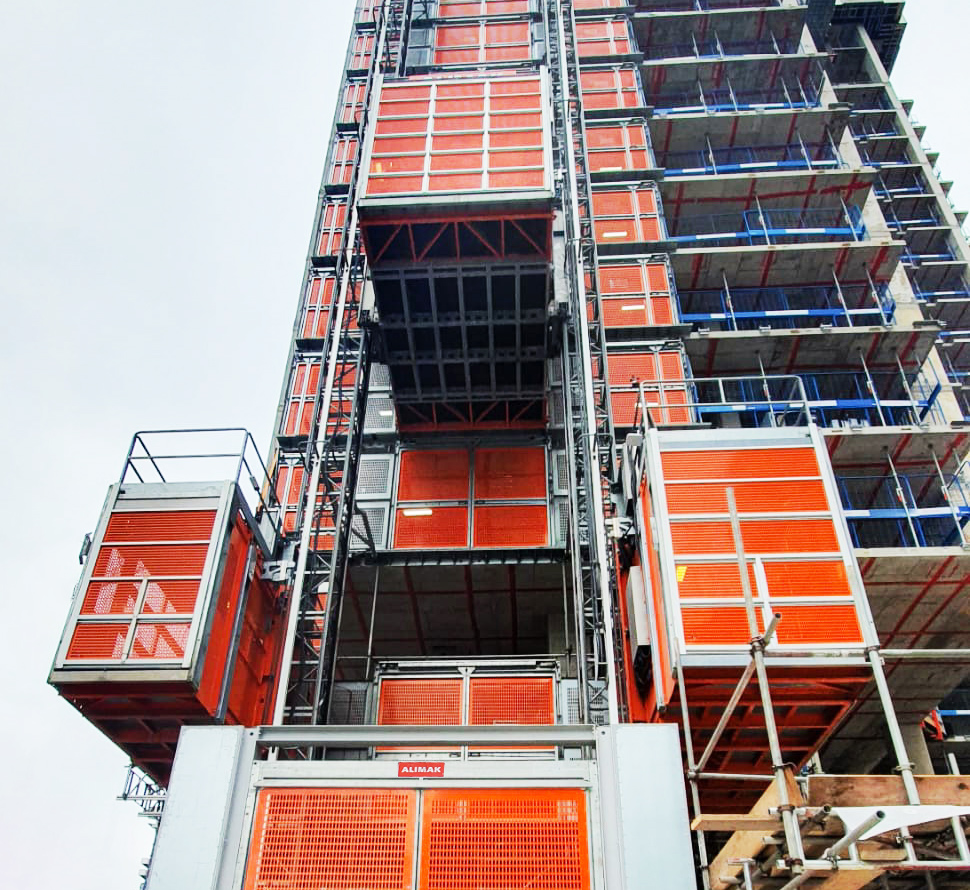 Dos montacargas de obra Alimak Scando 450 FC dan servicio a 53 plantas, incluidas dos plantas de sótano, dentro del núcleo del edificio. Por último, una plataforma de transporte Alimak TPL 1000 proporcionará acceso a las dos plantas superiores del edificio. La experiencia de Alimak en proyectos similares, incluidas las primeras fases en SQP, nos permitió mejorar digitalmente el BIM del producto para garantizar que las mejoras de diseño se validaran antes de la instalación.