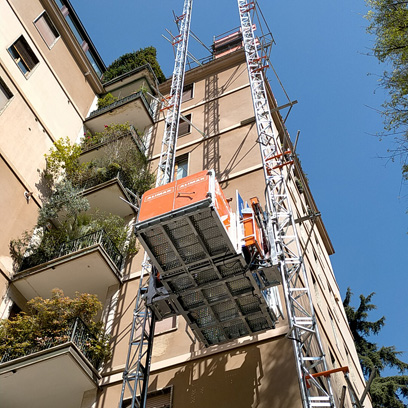 La plate-forme de transport Alimak TPL 500 a été utilisée lors de la restauration de la façade et de la lanterne de l’ancien baptistère de San Giovanni à Florence, en Italie. D’une hauteur de levage de 24 mètres, la plate-forme de transport a été utilisée pour transporter des personnes et des matériaux sur neuf niveaux différents de l’échafaudage recouvrant les murs extérieurs du monument.