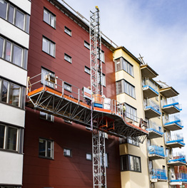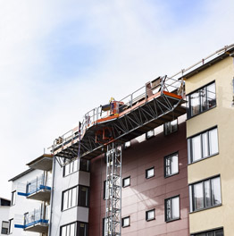 Les plates-formes de travail se déplaçant le long de mât(s) Alimak facilitent le travail de façade dans un projet de construction durable au nord de la Suède