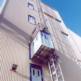 L’élévateur ALIMAK SE de la centrale atteint une hauteur totale de 29 mètres et une capacité de charge utile de 1200 kg. Le mât est attaché à la structure métallique derrière le revêtement du bâtiment. Des portes palières à verrouillage électrique et mécanique sont intégrées dans les murs pour un accès sûr aux différents niveaux du bâtiment.