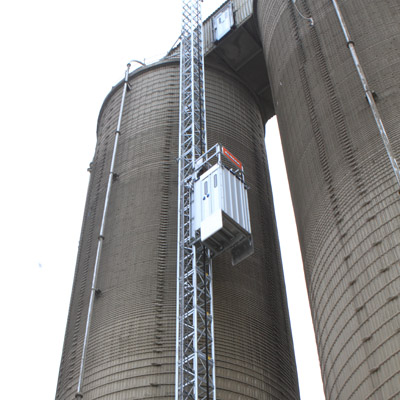 Le mât est en acier galvanisé. L’érection du mât d’ascenseur s’effectue à partir de la cabine elle-même. S’il est installé au début du processus de construction, l’ascenseur peut souvent être utilisé dans la construction proprement dite du bâtiment sur lequel il restera ensuite comme ascenseur permanent.