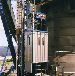 蒸煮器上安装的电梯是 ALIMAK SE-5。该电梯安装在外部,无需使用电梯井。该电梯的提升高度为61米,速度为0.7米/秒。不锈钢吊笼的载荷为500公斤。为了监测仪器和工艺、维修漏水的管接头等,需要频繁进入斯库格哈尔 (Skoghall ) 工厂的两个漂白塔的各个楼层。50米和56米高的结构均安装了带有不锈钢吊笼的外部输送电梯。这两个吊笼比蒸煮器上的大一些,载荷分别为1000公斤和1200公斤。第四台安利马赫 (Alimak) 电梯于1994年安装在一栋绿液过滤大楼上,其提升高度为21米。